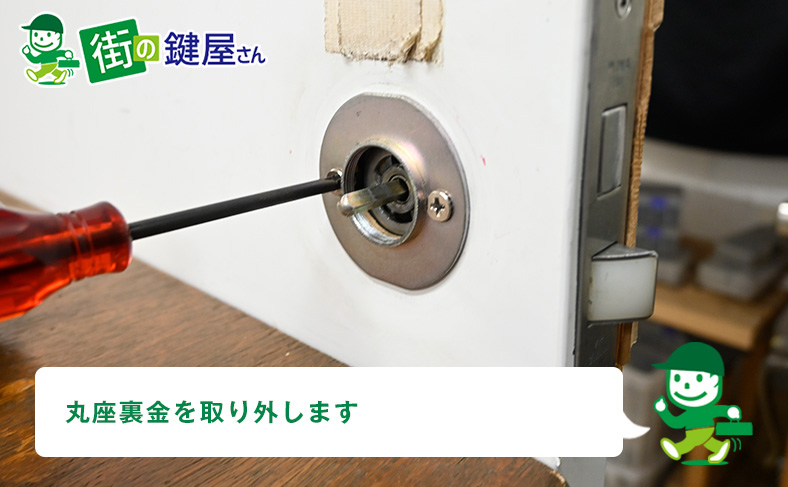 丸座裏金を外すと、室外側のハンドルを取り外すことができます。